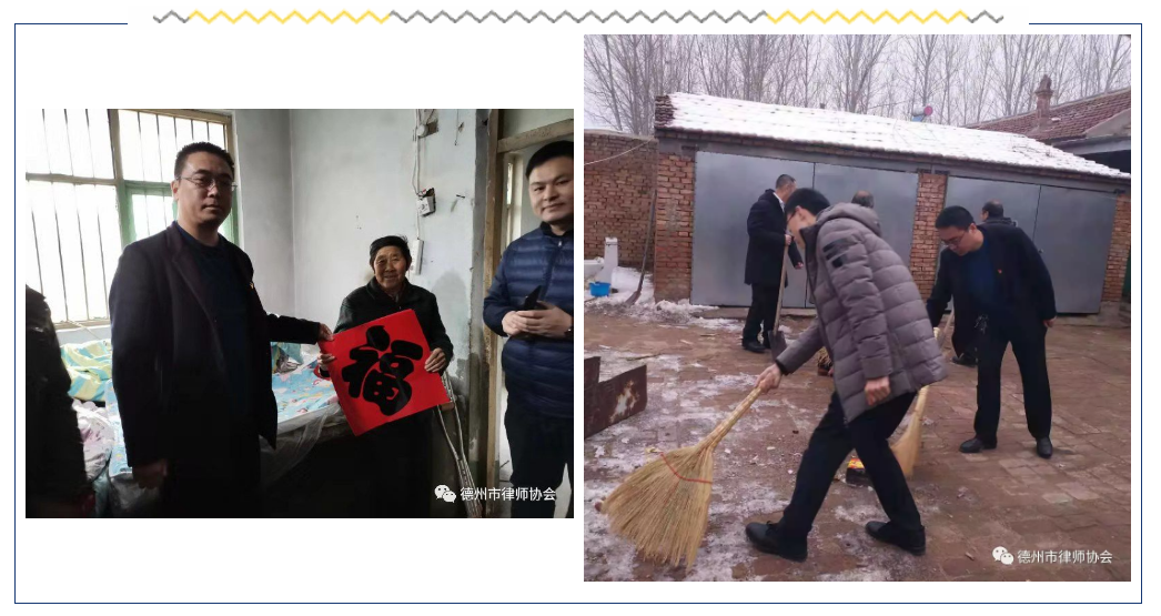 新春将至,天寒心暖。全市律师事务所和律师积极响应市司法局、市律协的号召,积极开展春节走访慰问和扶贫帮困活动。无论是看望孤寡老人还是捐资助学,无论是送去慰问物品还是真情陪伴,无论是法律咨询还是法律援助,我市律师都将投身公益活动嵌入自己的日常工作生活中,用自己的专业专长参与法治德州建设,用自己的博爱心胸助力社会和谐,将热心公益事业挺在胸前,展现出德州律师的责任与担当。